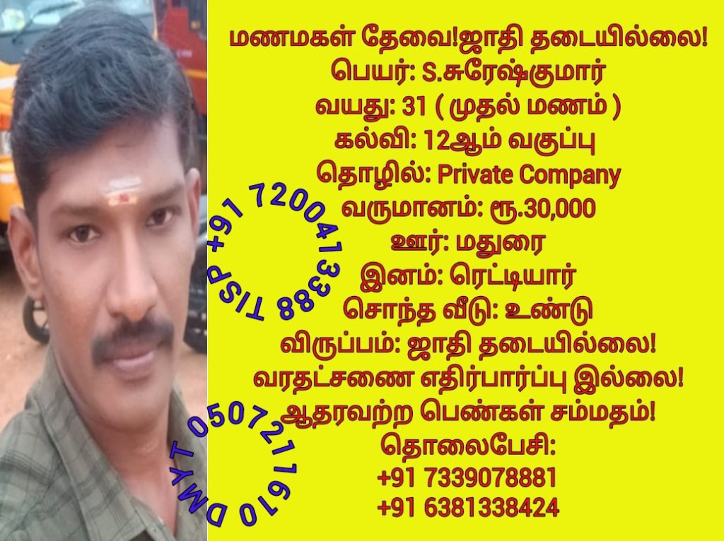 திருமண இலவச சேவை பக்கம், மதுரை, வாட்ஸ் அப் எண்: +91 7200413388 இது முழு இலவச சேவை அமைப்பாகும்! கட்டணம் எதுவுமில்லை!