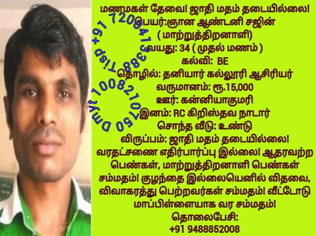 ஜாதி தடையில்லை! மணமக்களின் விவரங்கள்! @TispMadurai வாட்ஸ் அப் எண்: +91 7200413388: https://www.youtube.com/playlist?list=PLn95ktZ5NYnmINVcaO77dCP3e97-oJVHW