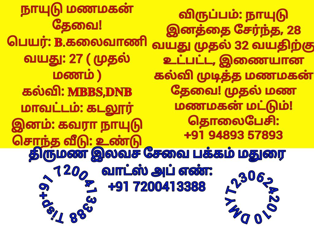 திருமண இலவச சேவை பக்கம், மதுரை, வாட்ஸ் அப் எண்: +91 7200413388 இது முழு இலவச சேவை அமைப்பாகும்! கட்டணம் எதுவுமில்லை!