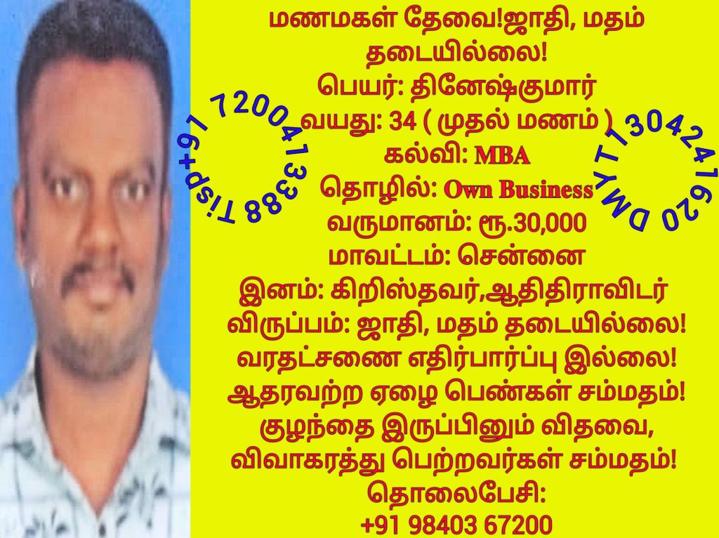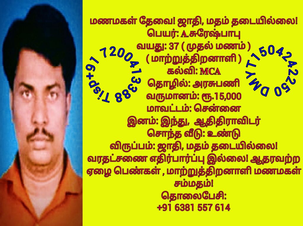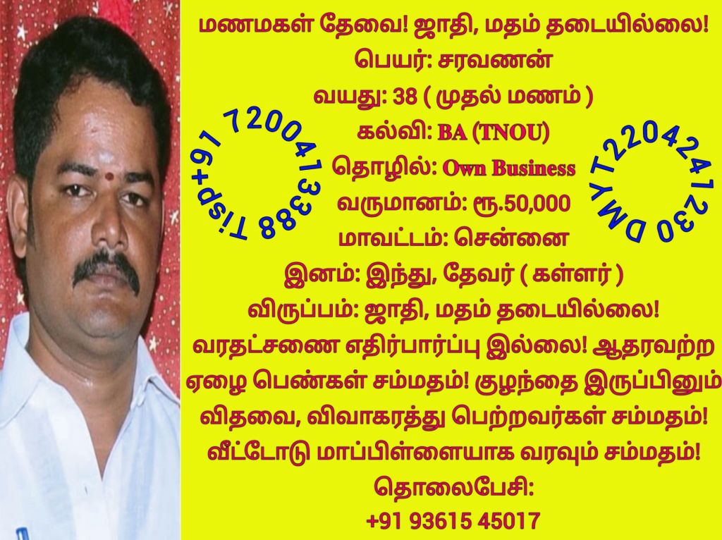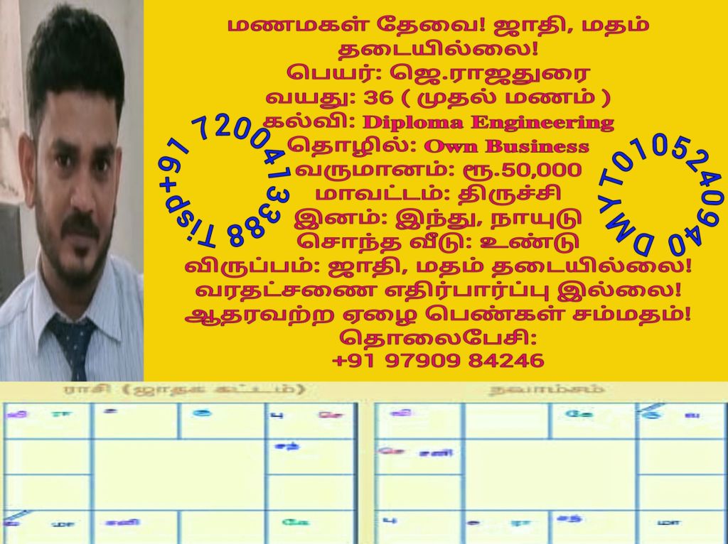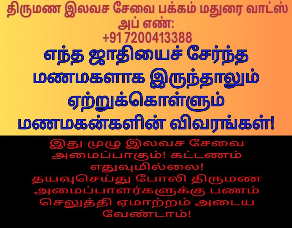 ஜாதி தடையில்லை! மணமக்களின் விவரங்கள்! @TispMadurai வாட்ஸ் அப் எண்: +91 7200413388: https://www.youtube.com/playlist?list=PLn95ktZ5NYnmINVcaO77dCP3e97-oJVHW