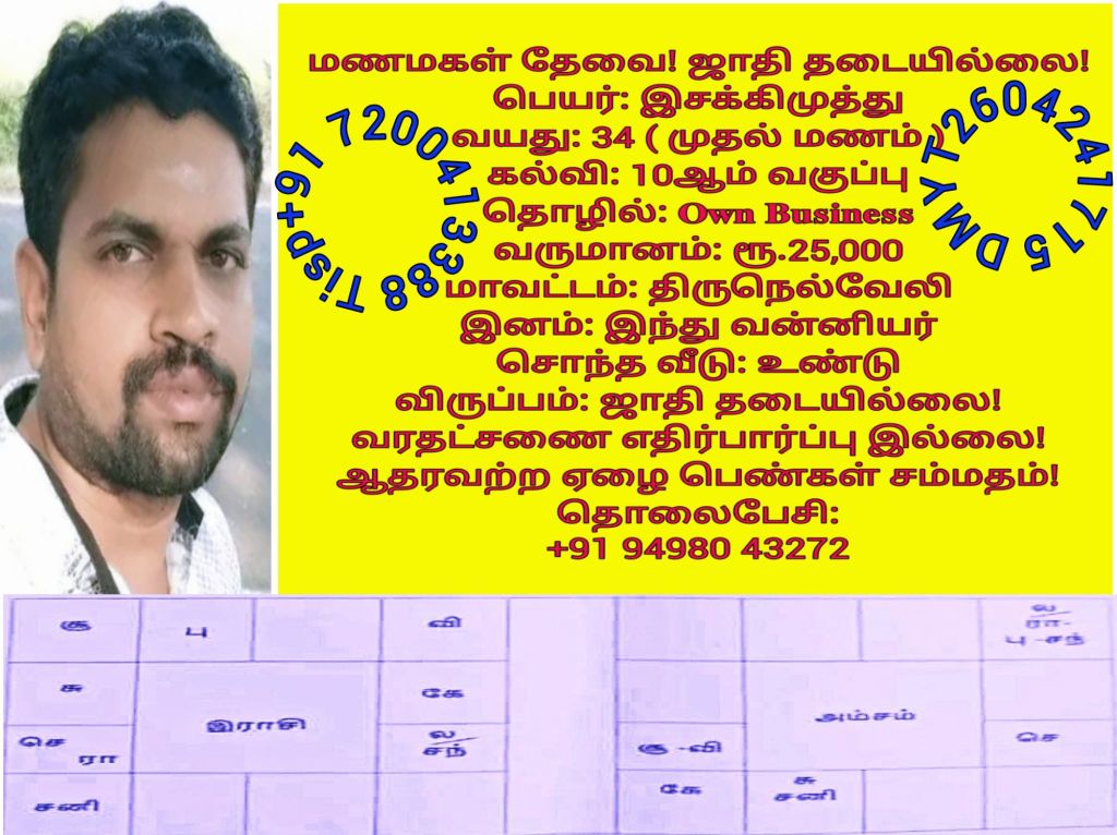 34 இசக்கிமுத்து, திருநெல்வேலி, +91 94980 43272