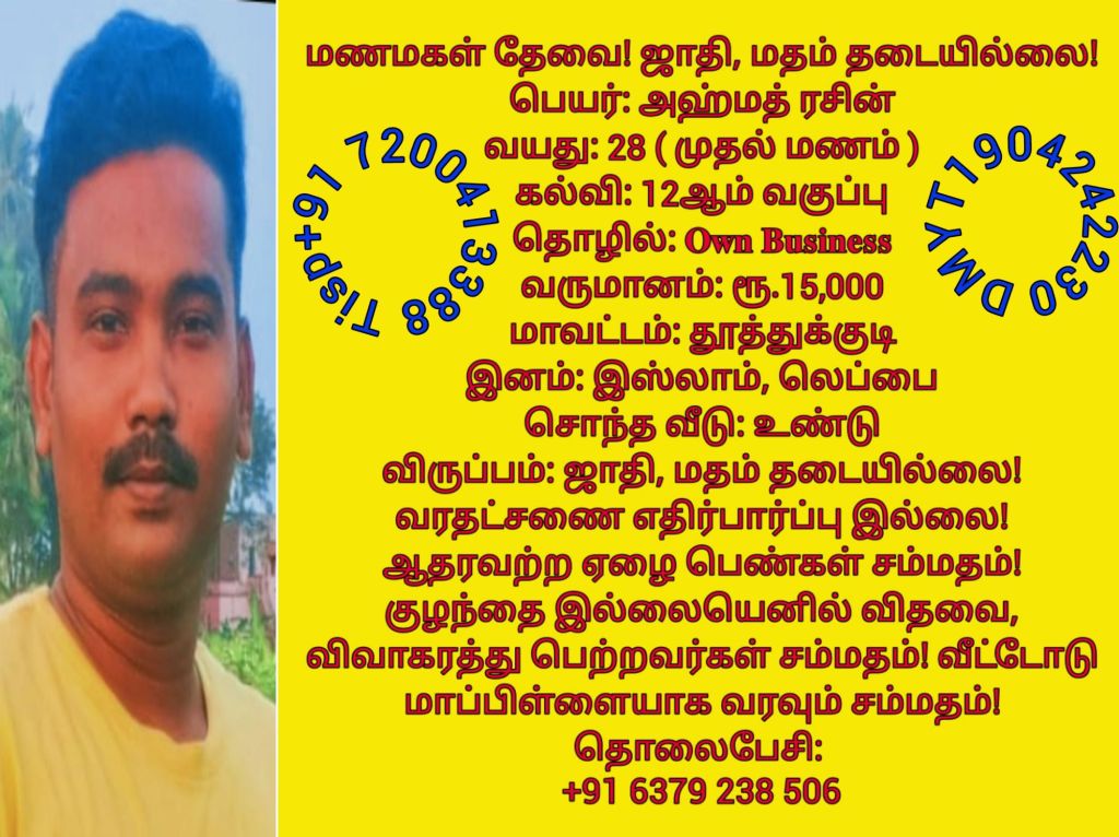 17 அஹமத் ரசின், தூத்துக்குடி, +91 6379 238 506