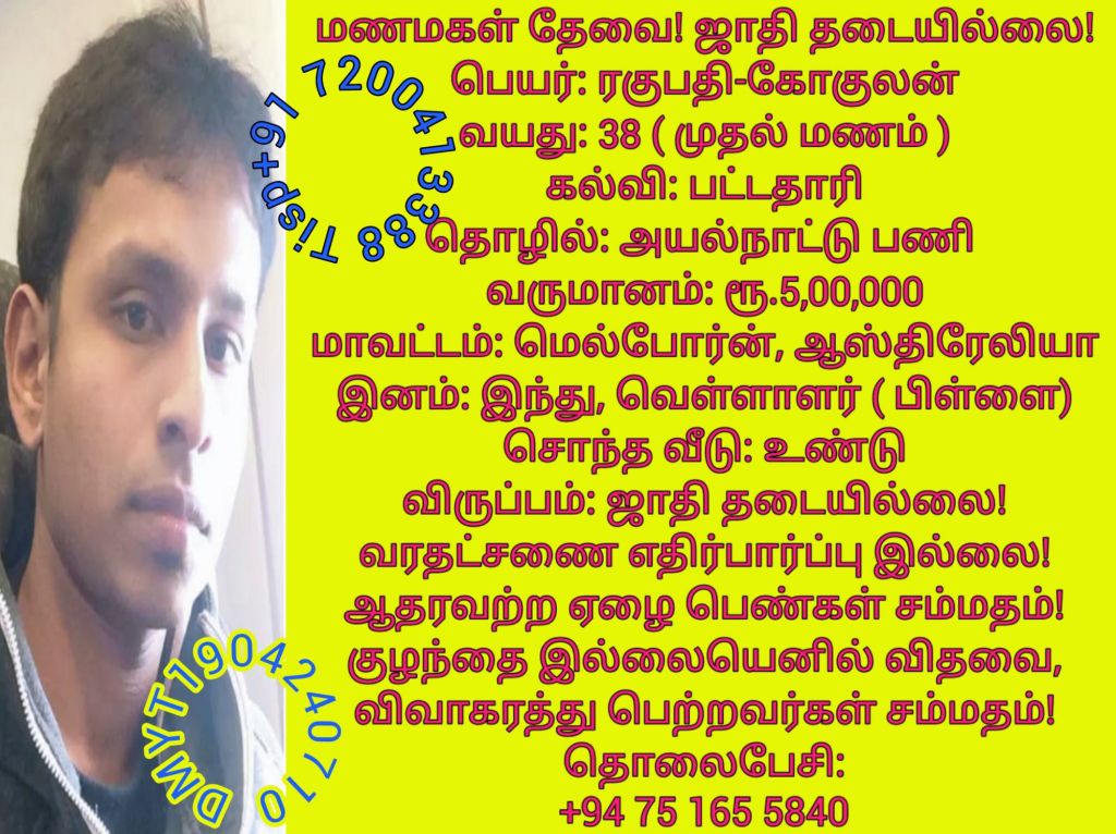 14 ரகுபதி-கோகுலன், மெல்போர்ன், ஆஸ்திரேலியா +94 75 165 5840