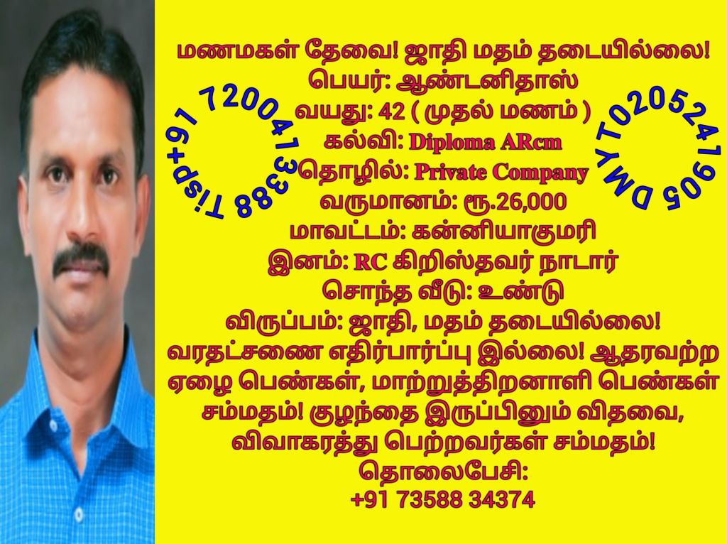 41 ஆண்டனிதாஸ், கன்னியாகுமரி, +91 73588 34374
