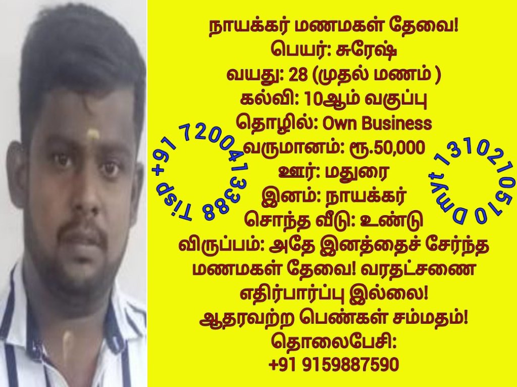 நாயக்கர் இனத்தைச் சேர்ந்த மணமக்களின் விவரங்கள்! @TispMadurai வாட்ஸ் அப் எண்: +91 7200413388: https://www.youtube.com/playlist?list=PLn95ktZ5NYnnE4VjrB0ClnIlbOGqmquQI