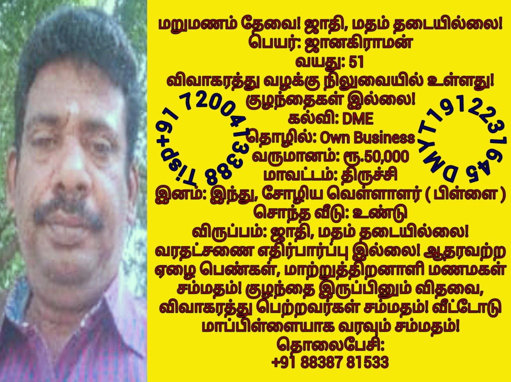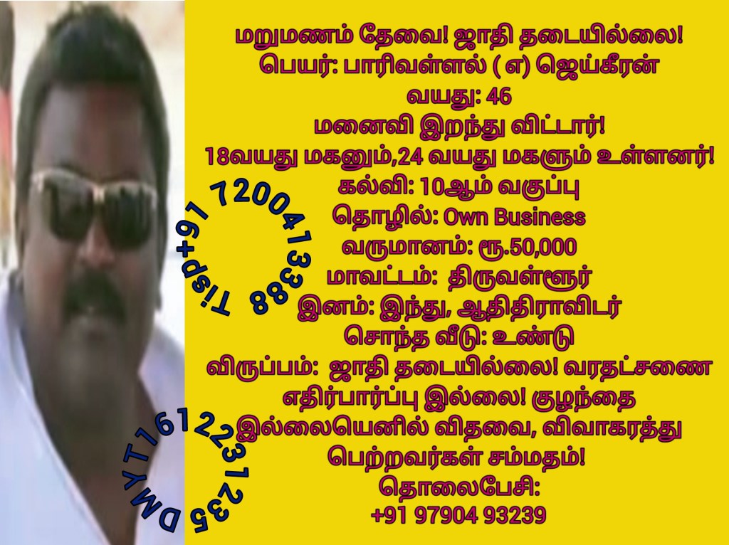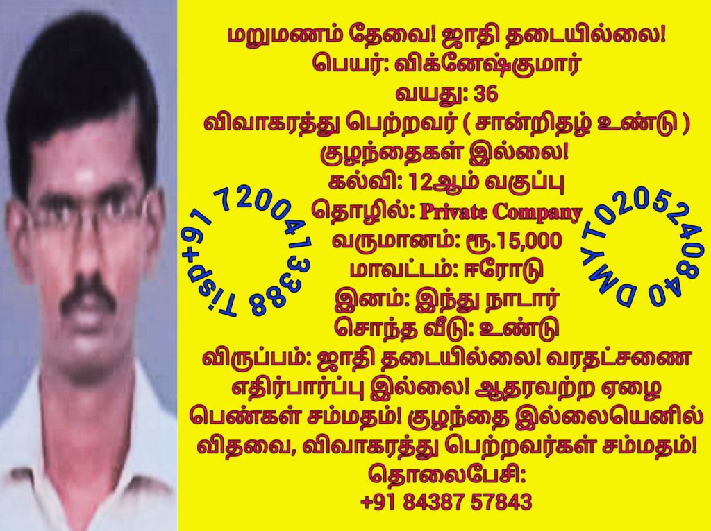 பகுதி-6 மறுமணம் தேவை! ஜாதி தடையில்லை! மணமகன்களின் விவரங்கள்!