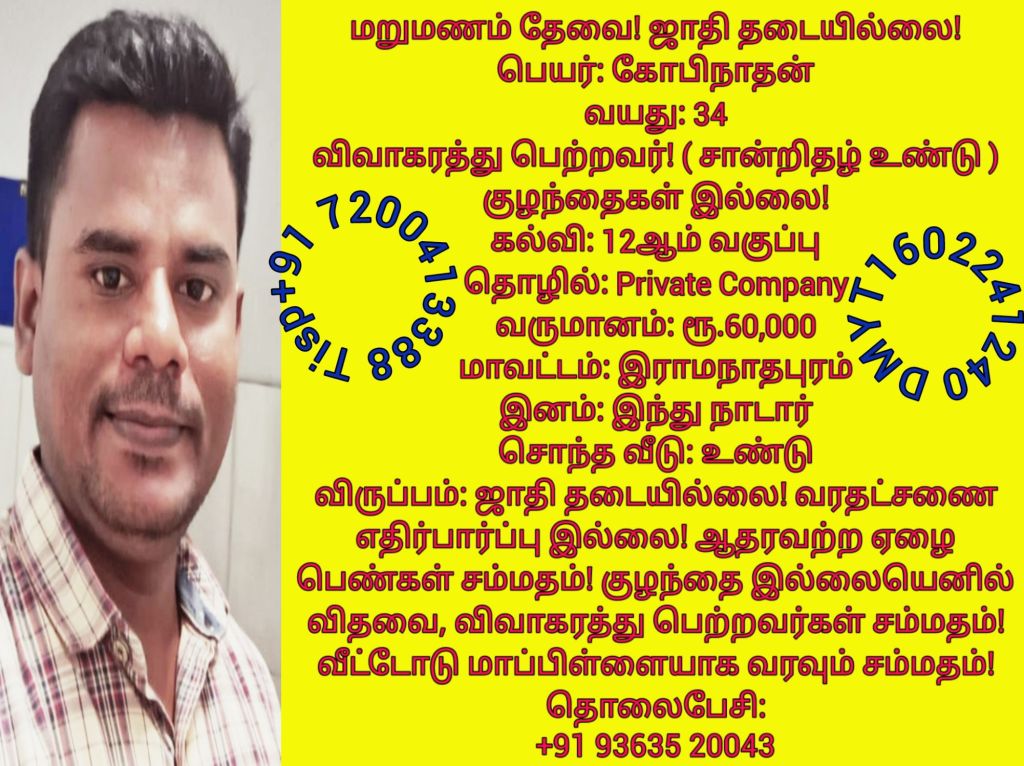பகுதி-7 மறுமணம் தேவை! ஜாதி தடையில்லை! மணமகன்களின் விவரங்கள்!