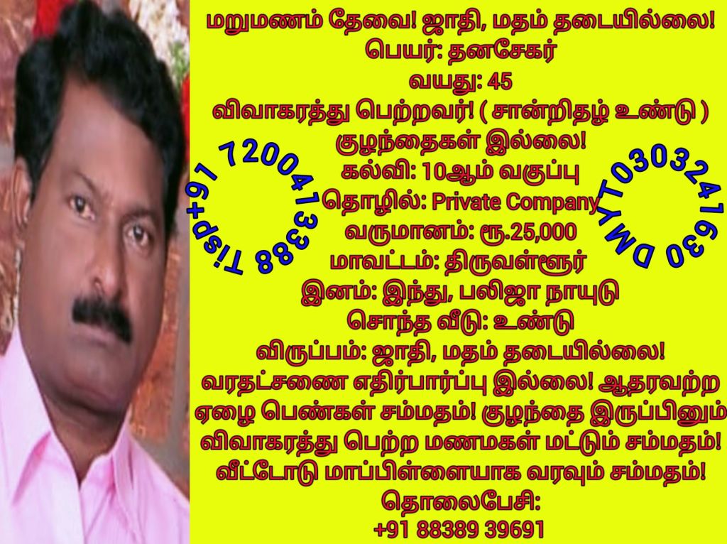 பகுதி-8 மறுமணம் தேவை! ஜாதி தடையில்லை! மணமகன்களின் விவரங்கள்!