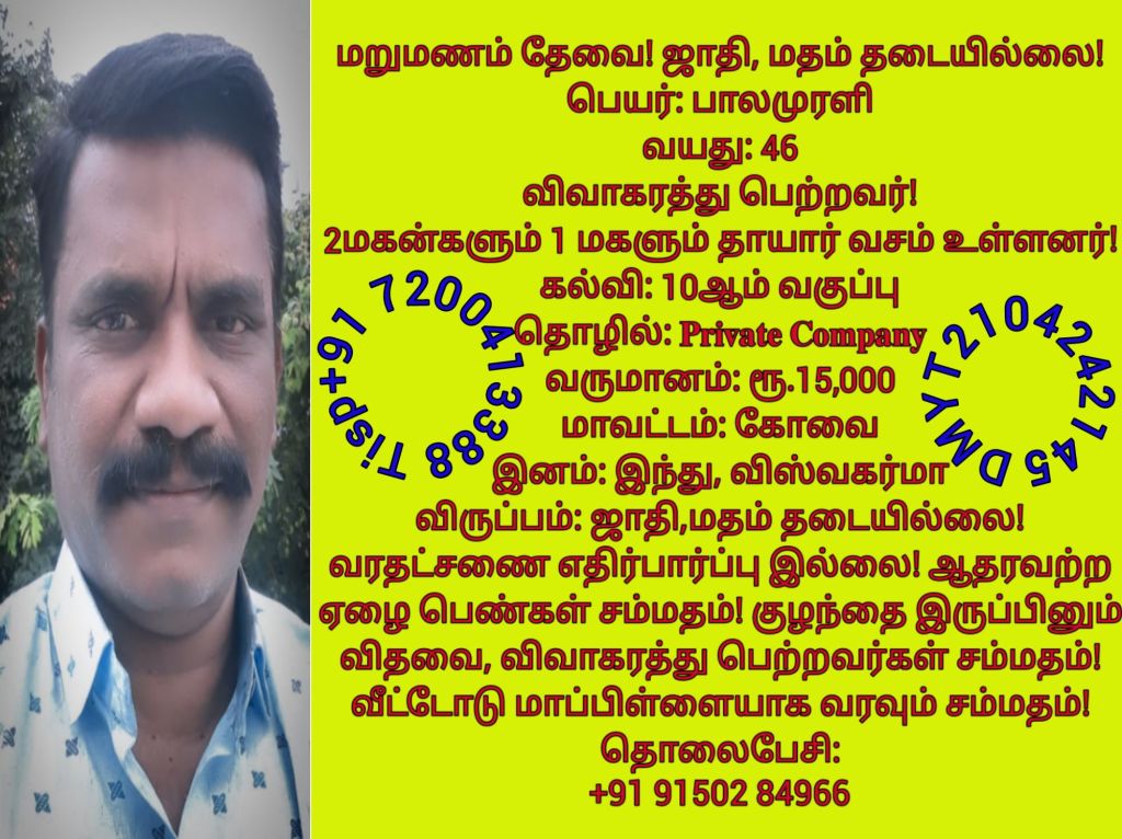 33 பாலமுரளி, கோவை, +91 91502 84966