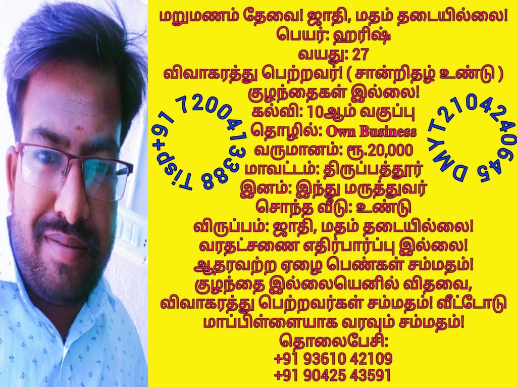 32 ஹரிஷ், திருப்பத்தூர், +91 93610 42109