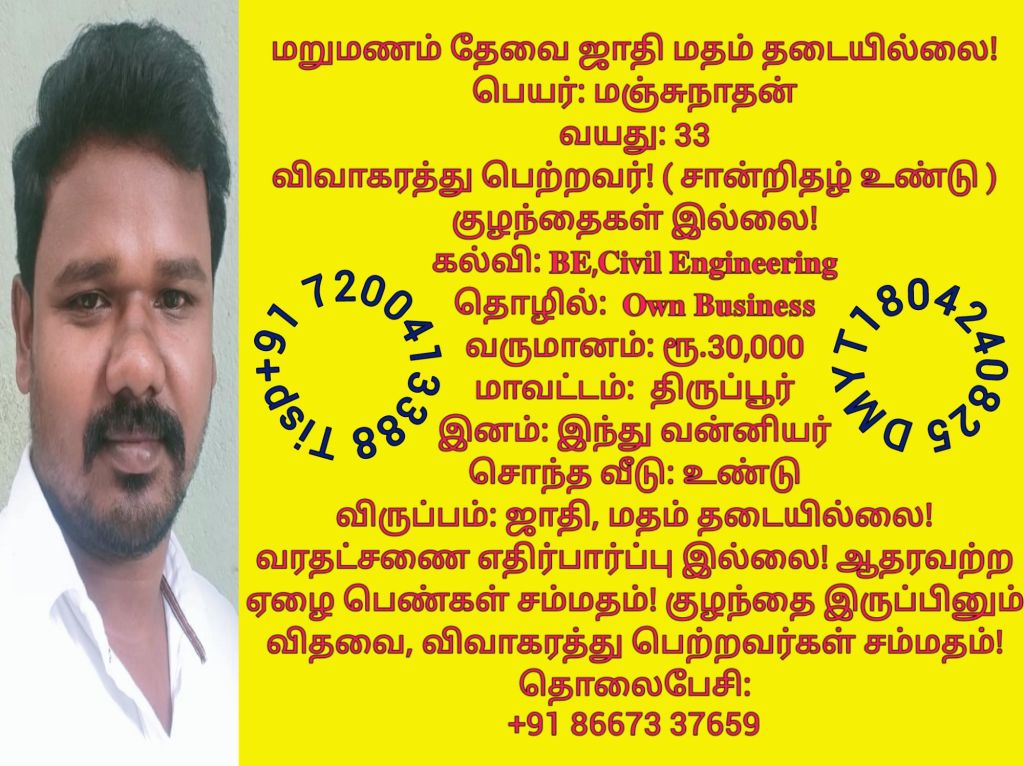 30 மஞ்சுநாதன், திருப்பூர், +91 86673 37659