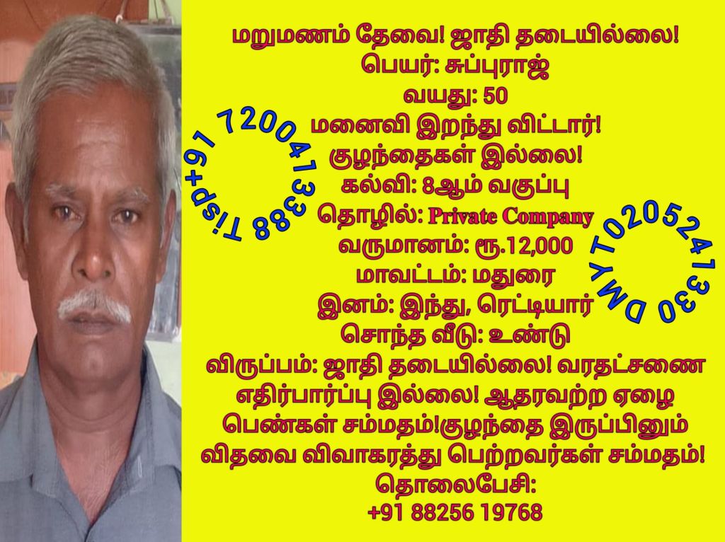 42 சுப்புராஜ், மதுரை, +91 88256 19768
