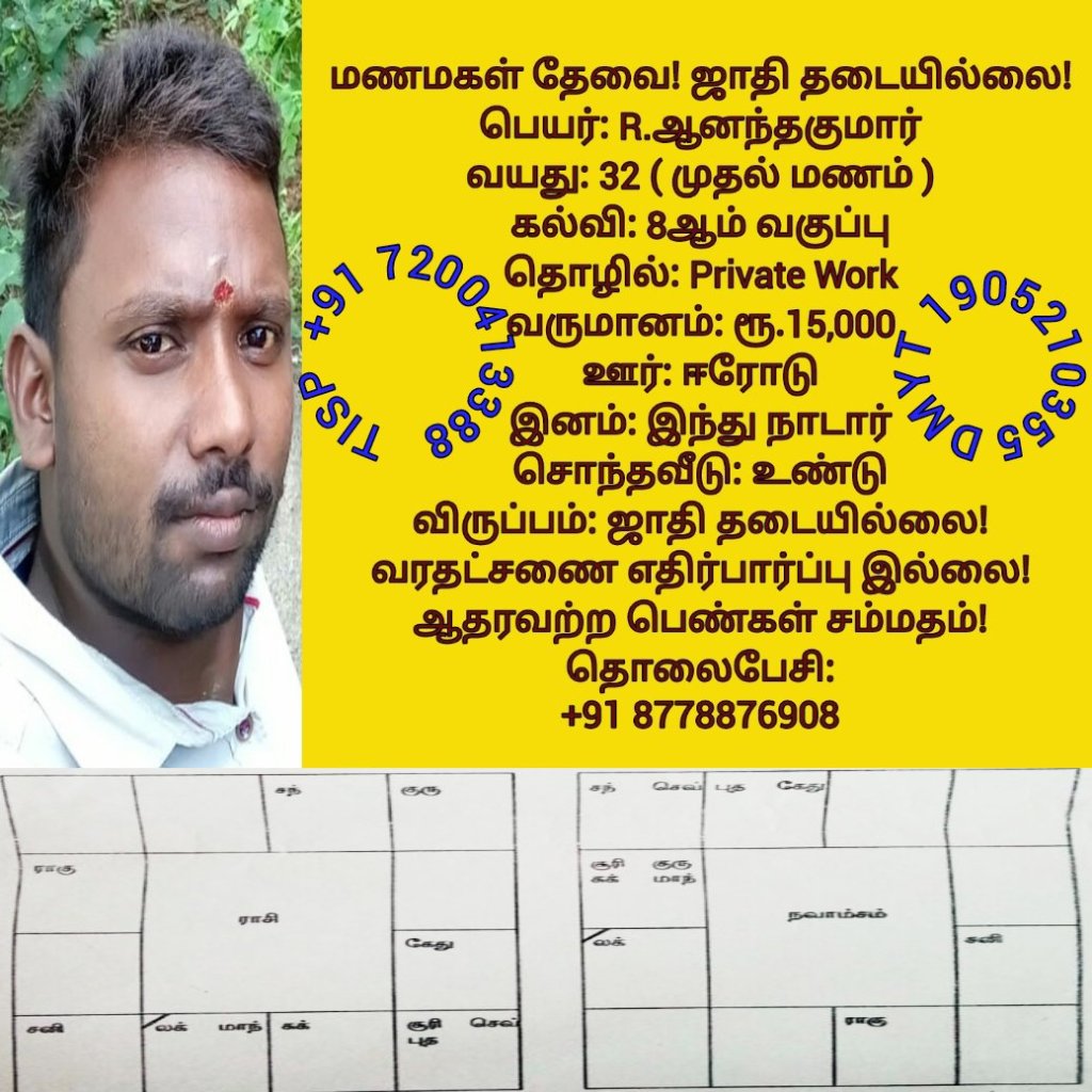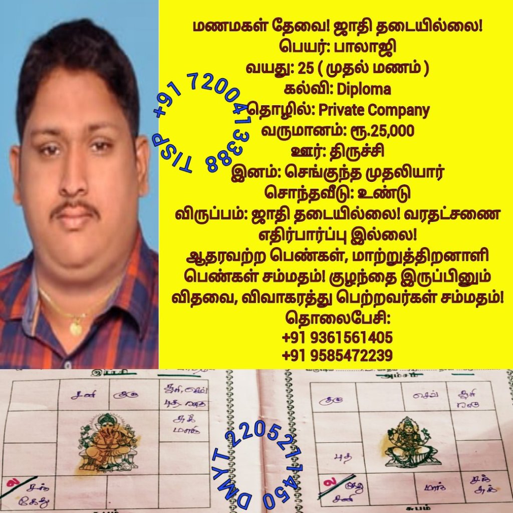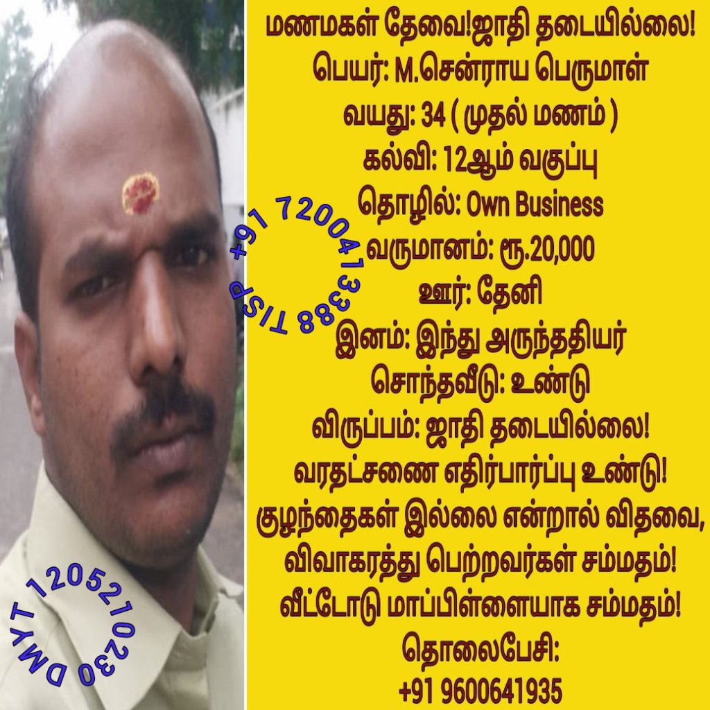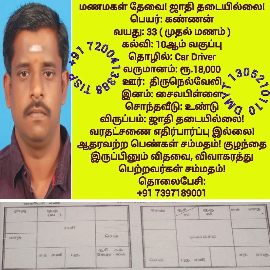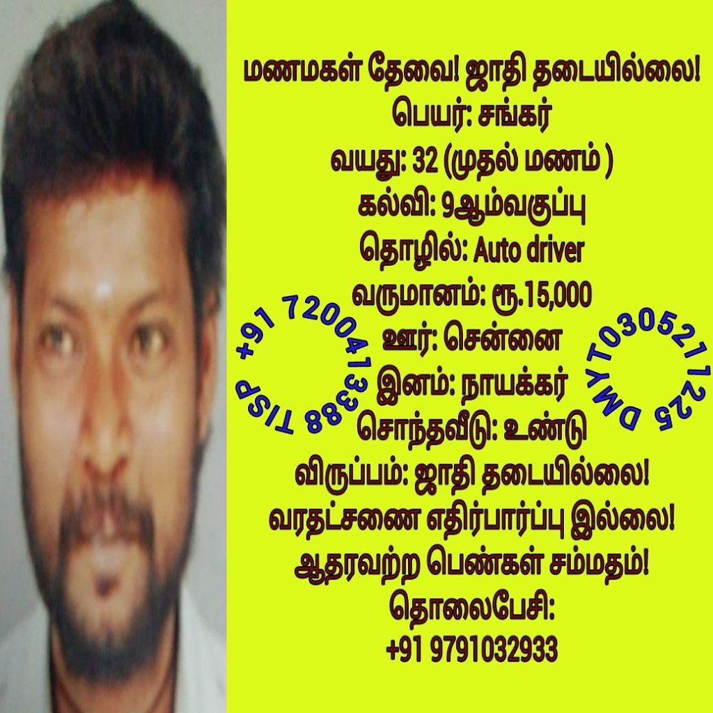 • திருமண இலவச சேவை பக்கம், மதுரை, வாட்ஸ் அப் எண்: +91 7200413388  இது முழு இலவச சேவை அமைப்பாகும்! கட்டணம் எதுவுமில்லை!