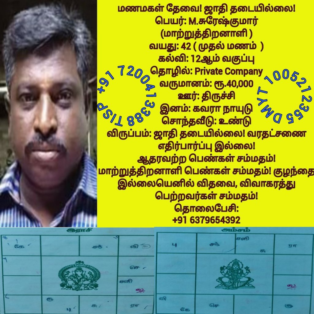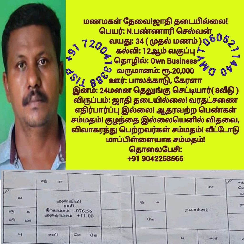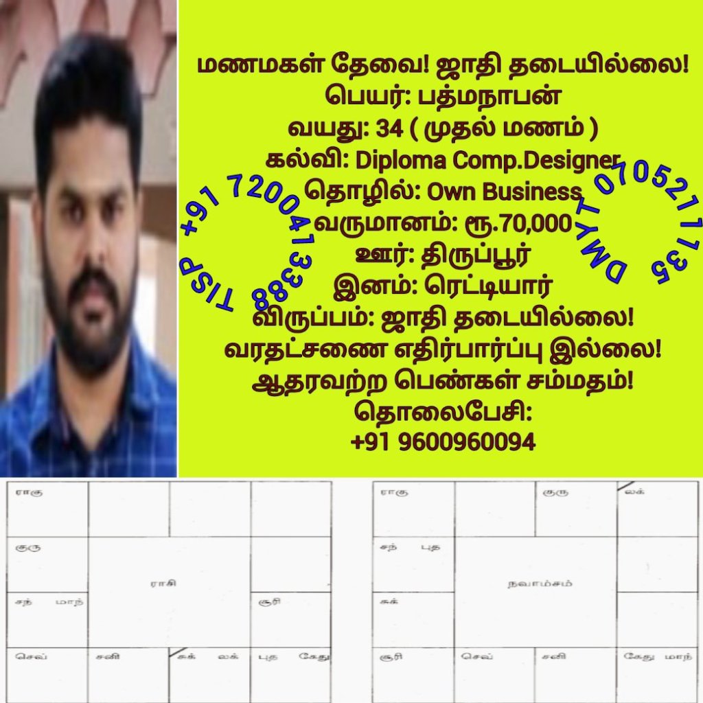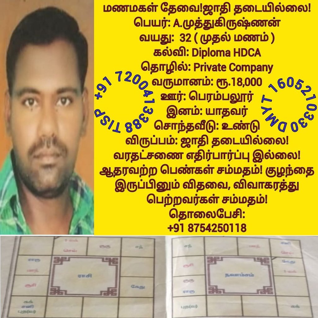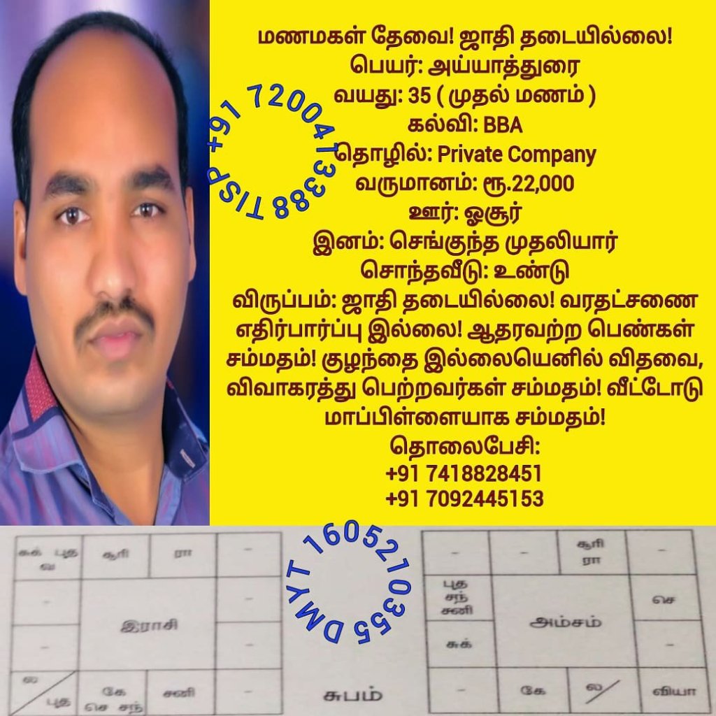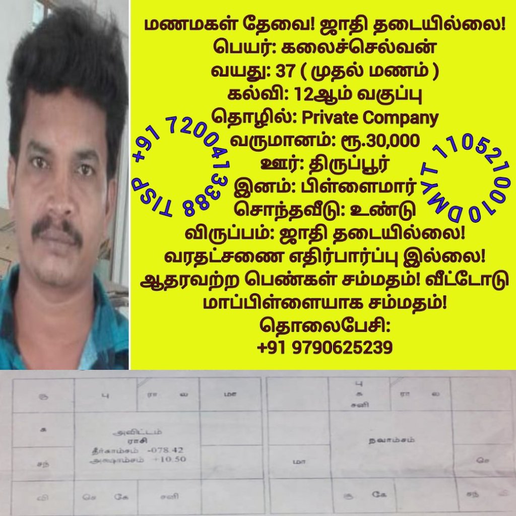 • திருமண இலவச சேவை பக்கம், மதுரை, வாட்ஸ் அப் எண்: +91 7200413388  இது முழு இலவச சேவை அமைப்பாகும்! கட்டணம் எதுவுமில்லை!
