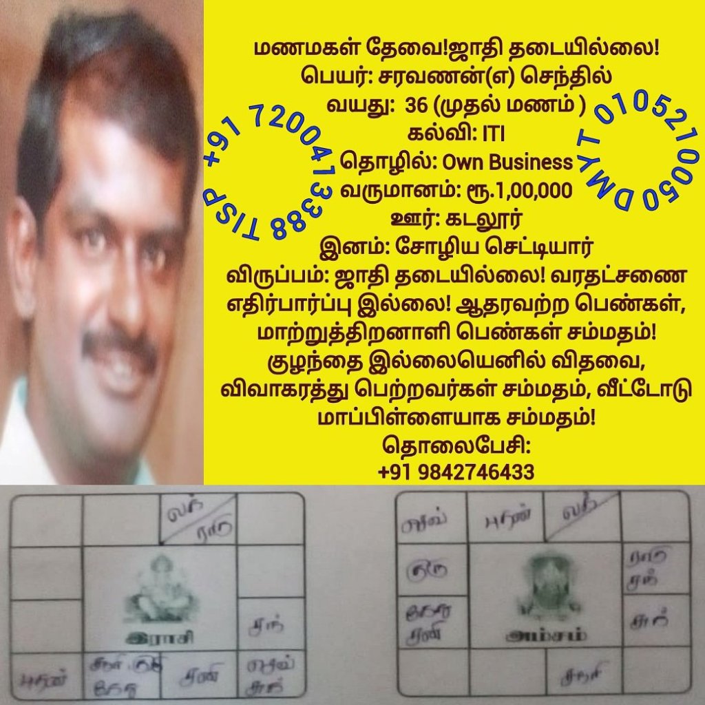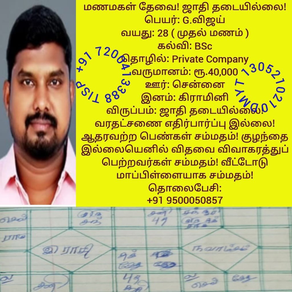 • பகுதி-28 மணமகள்கள் தேவை! ஜாதி தடையில்லை!மணமகன்களின் விவரங்கள்!
