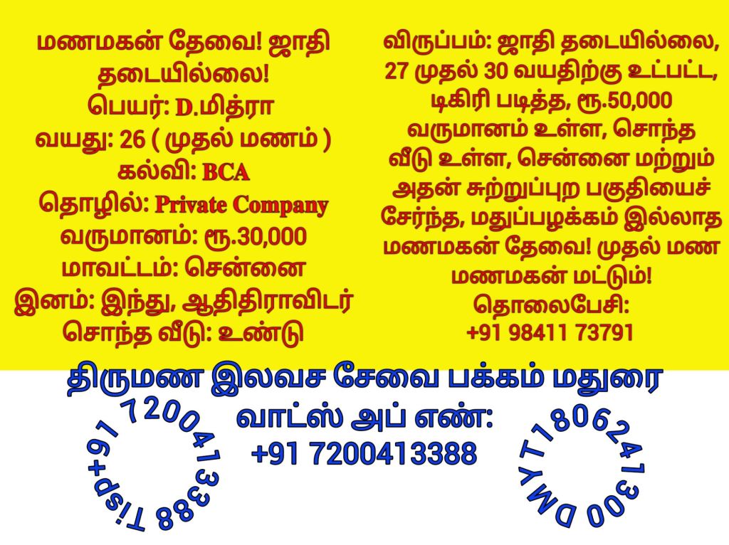 மணமகளின் விருப்பத்திற்கு தகுதியான திருமண இலவச சேவை பக்க உறுப்பினர்கள் மட்டும் திருமண இலவச சேவை பக்கத்தை தொடர்பு கொள்ளவும், விருப்பத்திற்கு தகுதியில்லை என்றால் தயவு செய்து எங்களது சேவை நேரத்தை வீணாக்குவதை தவிர்க்கவும், நன்றி