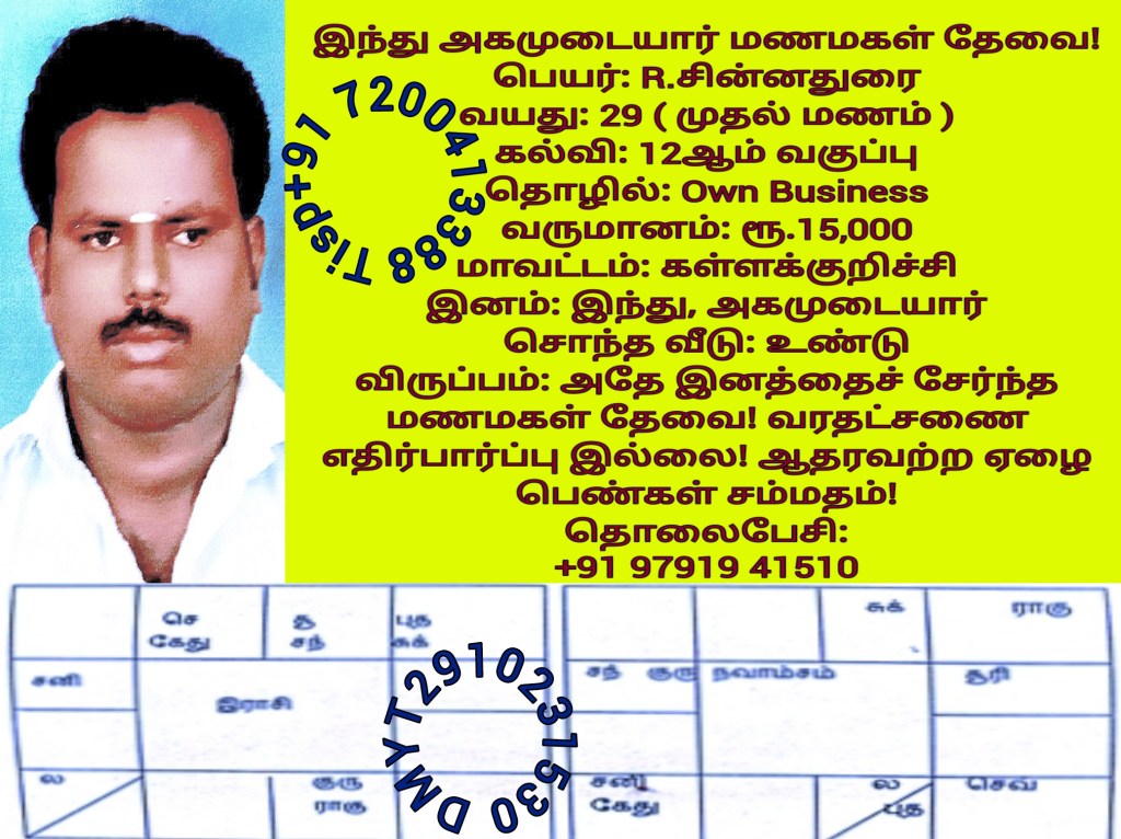 அகமுடையார் இனத்தைச் சேர்ந்த மணமக்களின் விவரங்கள்! @TispMadurai வாட்ஸ் அப் எண்: +91 7200413388: https://www.youtube.com/playlist?list=PLn95ktZ5NYnmc-FiB6J0fiM4U7rxyLTIj