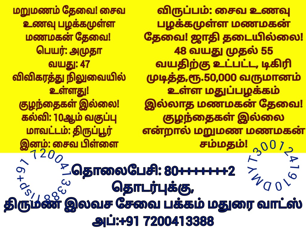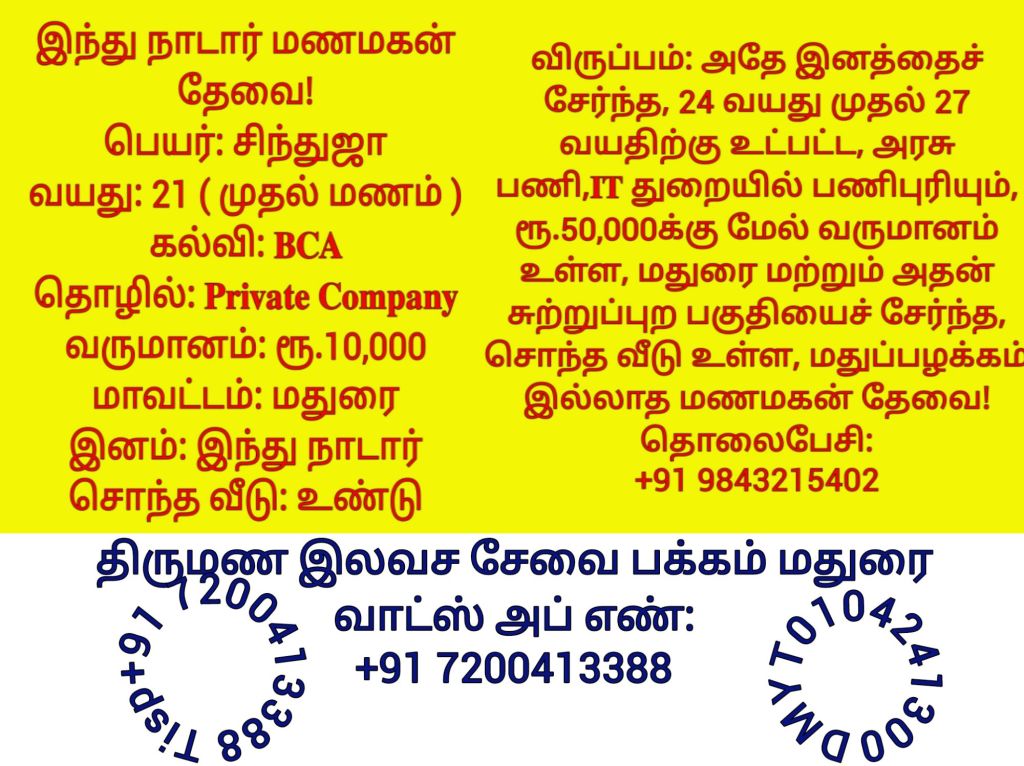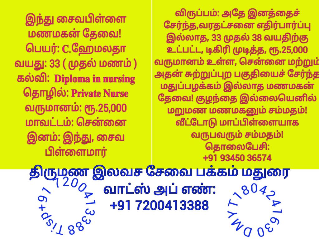 மணமகளின் விருப்பத்திற்கு தகுதியான திருமண இலவச சேவை பக்க உறுப்பினர்கள் மட்டும் திருமண இலவச சேவை பக்கத்தை தொடர்பு கொள்ளவும், விருப்பத்திற்கு தகுதியில்லை என்றால் தயவு செய்து எங்களது சேவை நேரத்தை வீணாக்குவதை தவிர்க்கவும், நன்றி