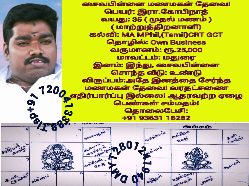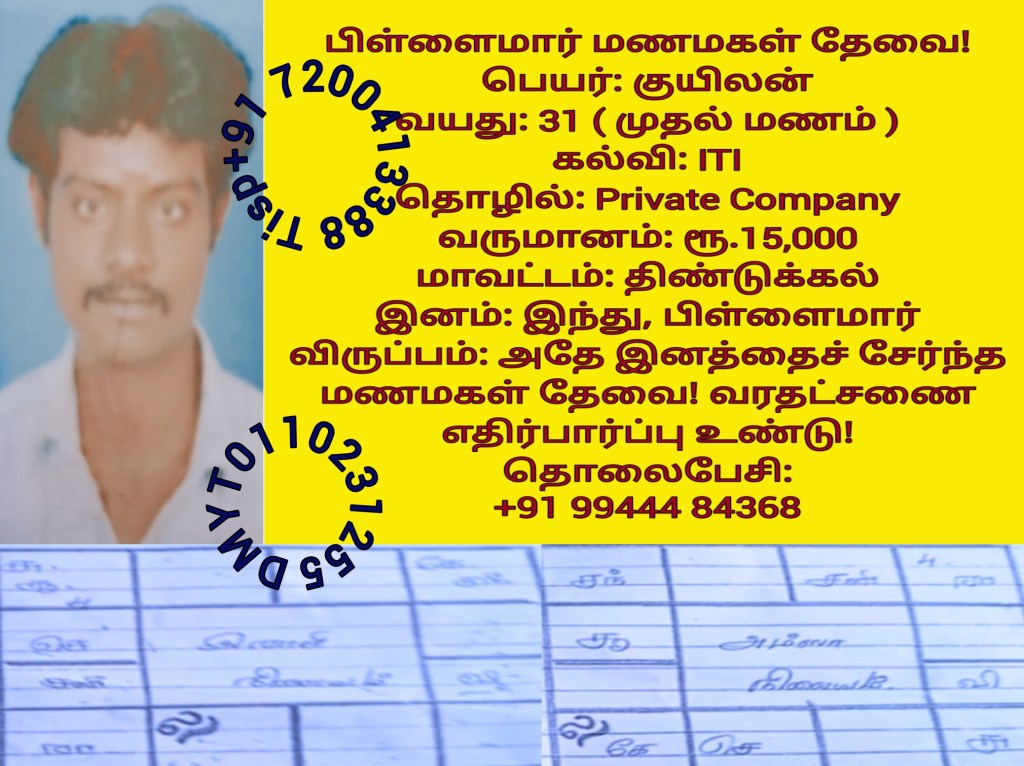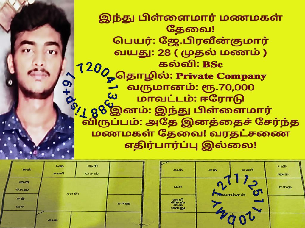 பகுதி-1 பிள்ளைமார் மணமகன்களின் விவரங்கள்!