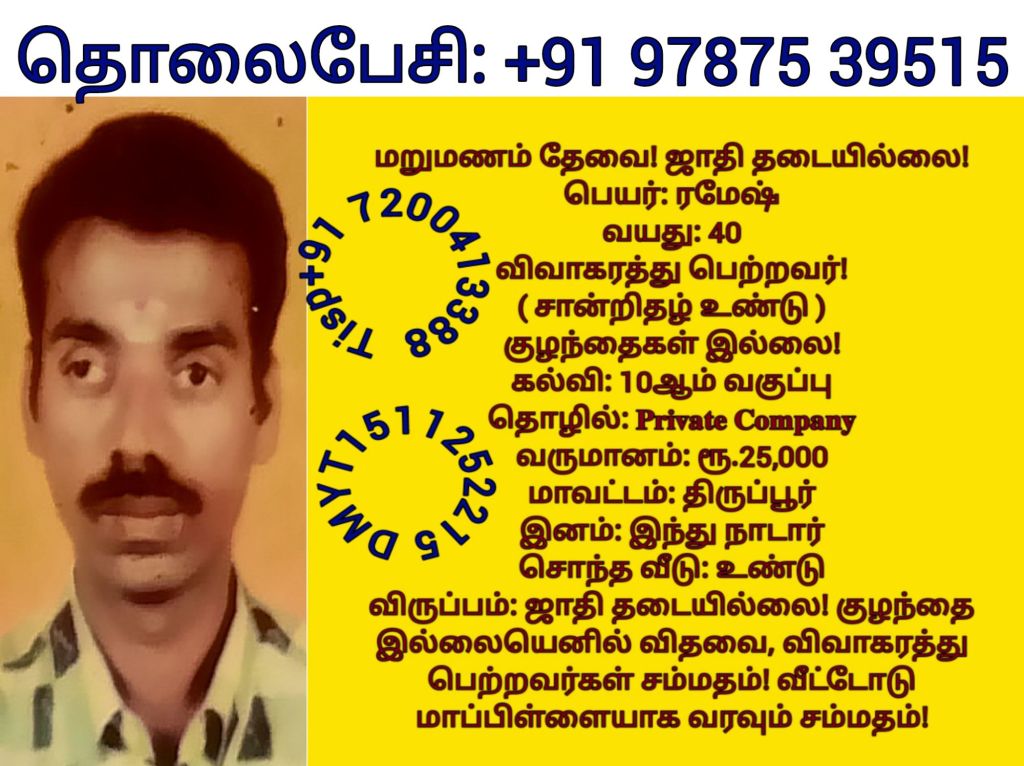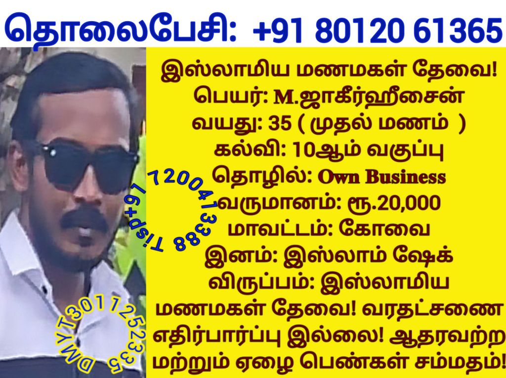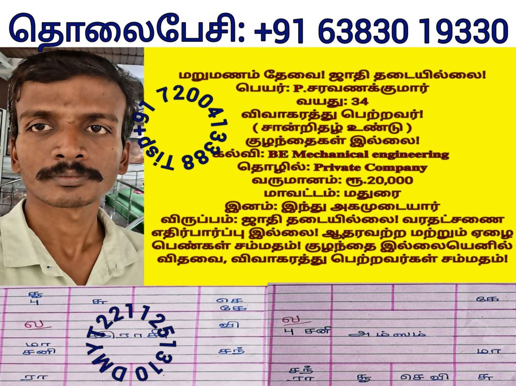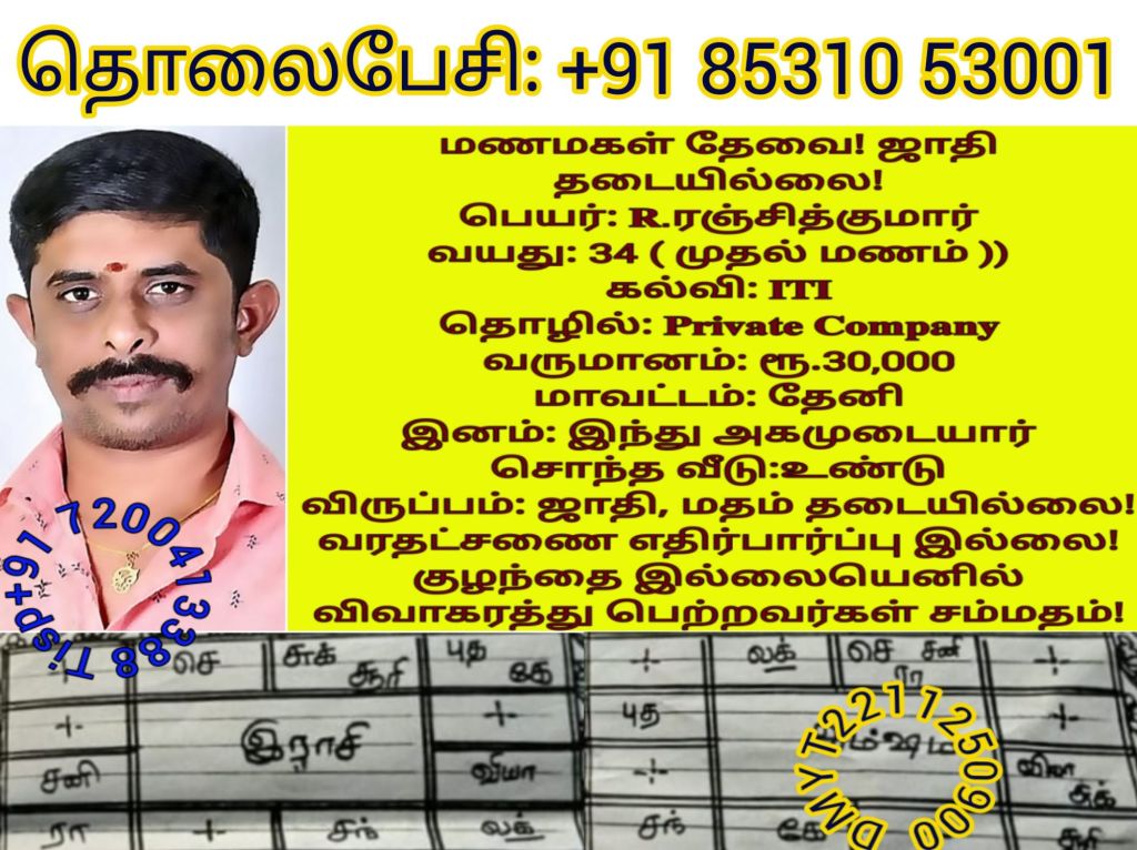 சத்யலெட்சுமி, திருநெல்வேலி தொலைபேசி எண்களை விளம்பரபடுத்த விரும்பவில்லை! மணமகளின் விருப்பத்திற்கு தகுதியான திருமண இலவச சேவை பக்க உறுப்பினர்கள் மட்டும் திருமண இலவச சேவை பக்கத்தை தொடர்பு கொள்ளவும், விருப்பத்திற்கு தகுதியில்லை என்றால் தயவு செய்து எங்களது சேவை நேரத்தை வீணாக்குவதை தவிர்க்கவும், நன்றிDownload