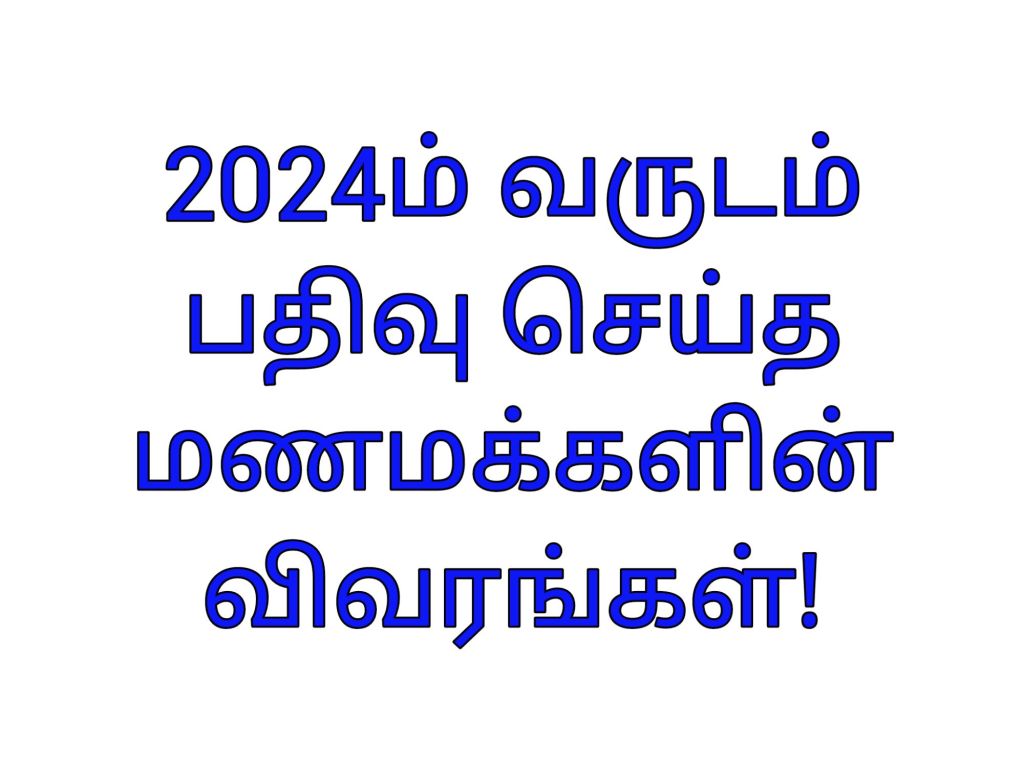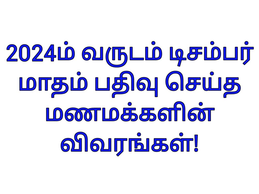 2024ம் வருடம் டிசம்பர் மாதம் பதிவு செய்த மணமக்களின் விவரங்கள்!