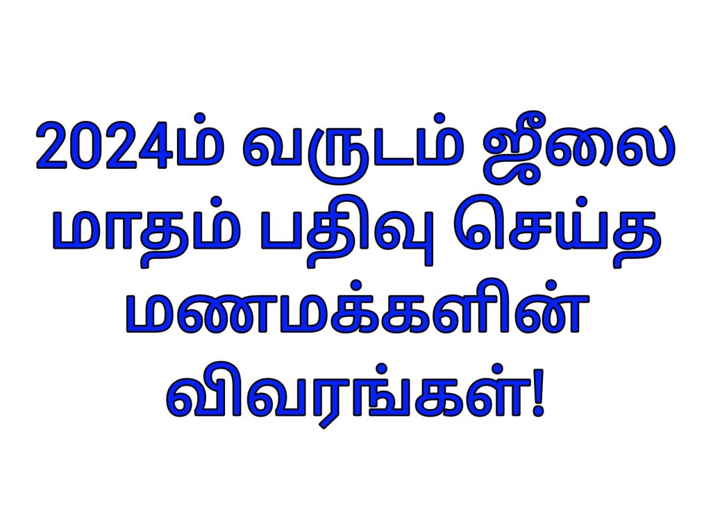 2024ம் வருடம் ஜீலை மாதம் பதிவு செய்த மணமக்களின் விவரங்கள்!