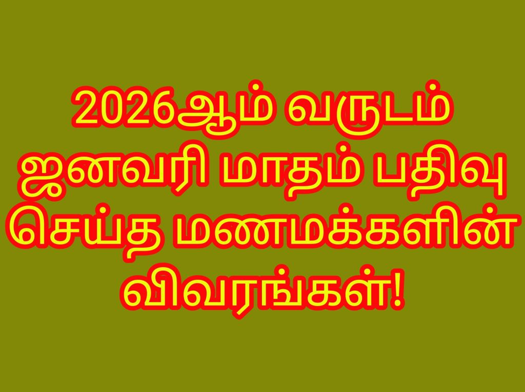 2026ம் வருடம் ஜனவரி மாதம் பதிவு செய்த மணமக்களின் விவரங்கள்!
