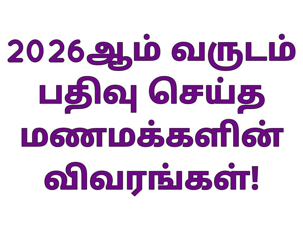 2026ம் வருடம் பதிவு செய்த மணமக்களின் விவரங்கள்!