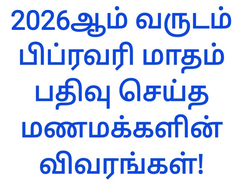 2026ஆம் வருடம் பிப்ரவரி மாதம் பதிவு செய்த மணமக்களின் விவரங்கள்!