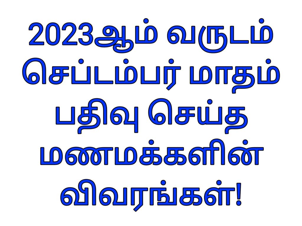 2023ஆம் வருடம் அக்டோபர் மாதம் பதிவு செய்த மணமக்களின் விவரங்கள்!