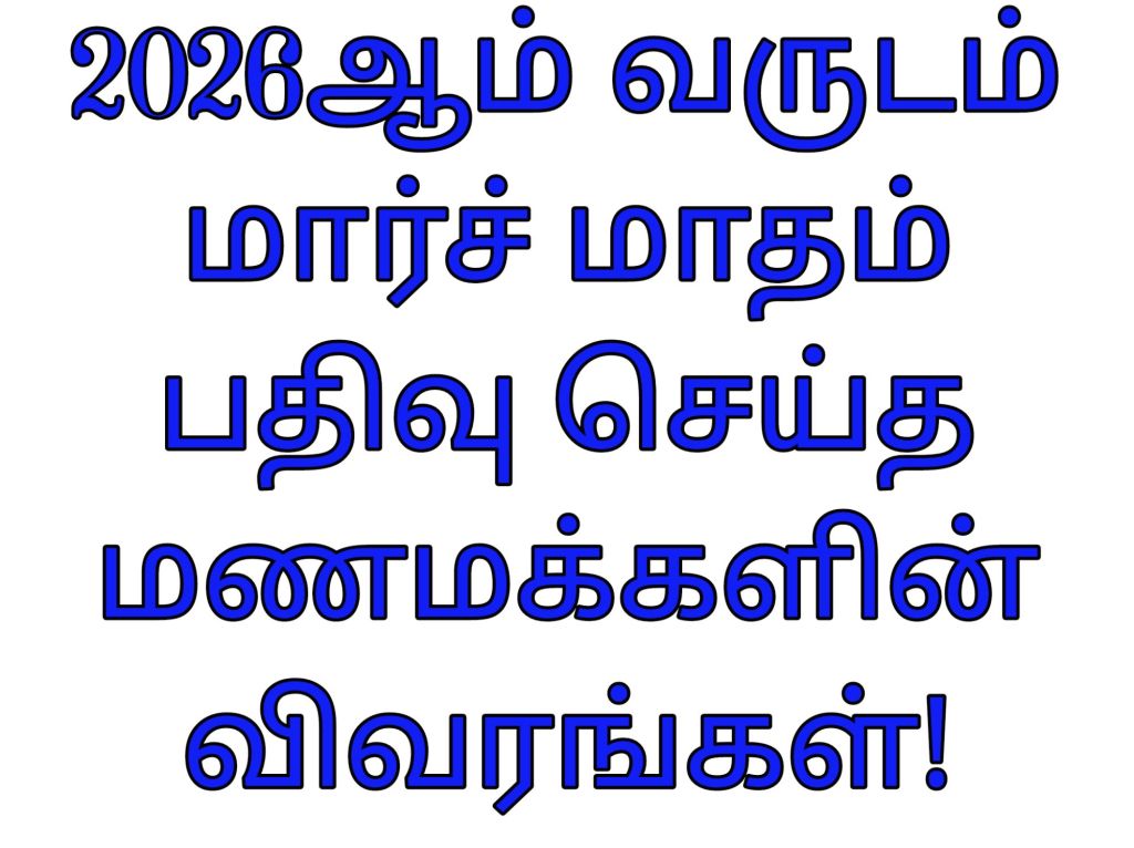 2026ஆம் வருடம் பிப்ரவரி மாதம் பதிவு செய்த மணமக்களின் விவரங்கள்!