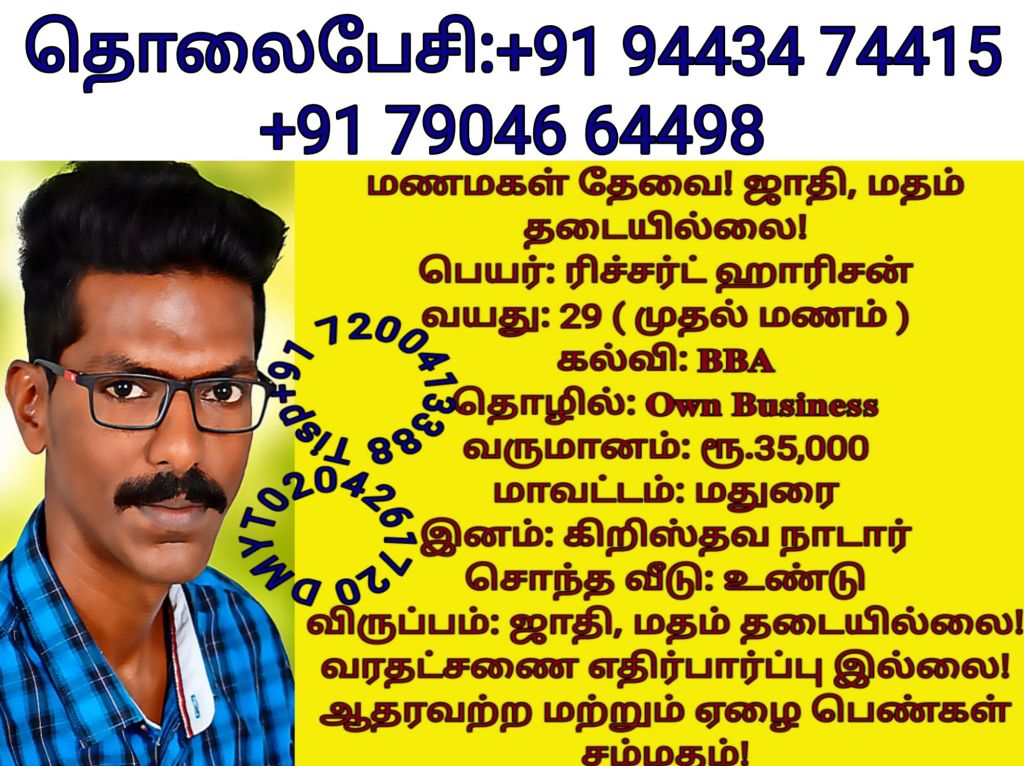 திருமண இலவச சேவை பக்கம், மதுரை, வாட்ஸ் அப் எண்: +91 7200413388 இது முழு இலவச சேவை அமைப்பாகும்! கட்டணம் எதுவுமில்லை!